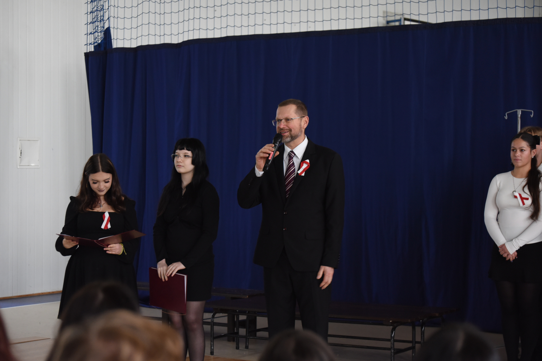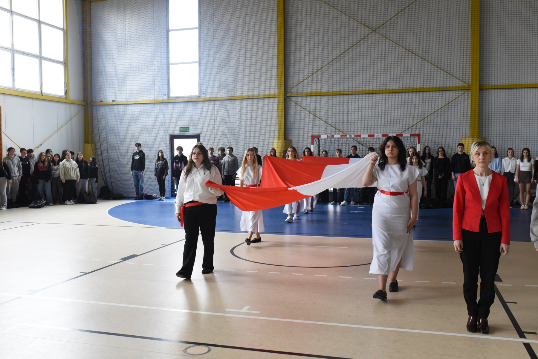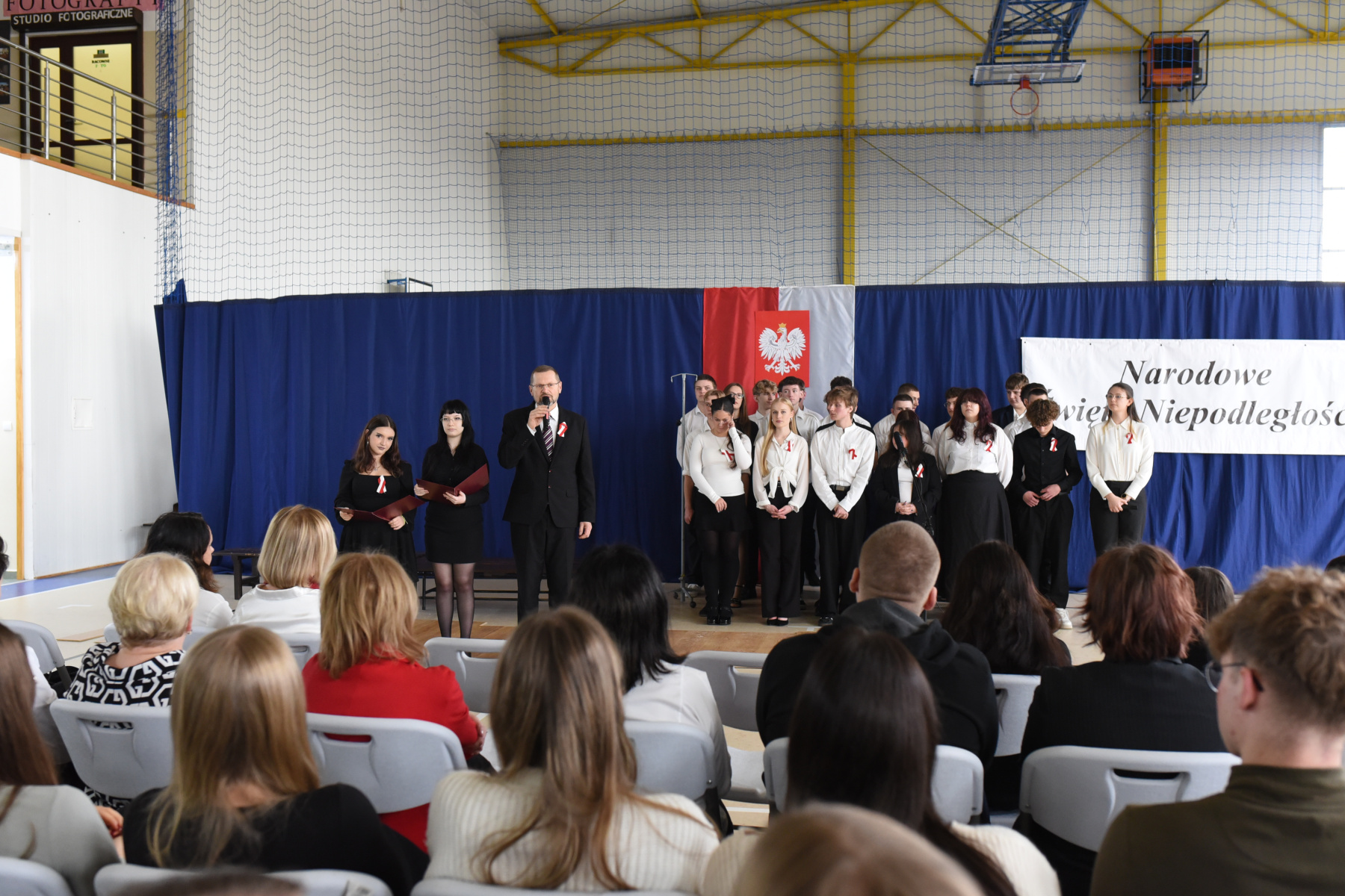 „Narodowe Święto Niepodległości” uczciliśmy wyjątkową lekcją – najpierw uczniowie wzięli udział w międzyklasowym turnieju wiedzy o II Rzeczpospolitej, a potem w widowisku inspirowanym malarstwem Jacka Malczewskiego i „Dziadami” cz. III A. Mickiewicza. Słowa padające ze sceny: Tułacze, zesłańcy, katorżnicy, Sybiracy…ilu przed nimi?, ilu po nich? …. …nigdy się nie dowiemy, ale wszyscy oni śnili sen o Polsce, wielu z nas zapadły głęboko w pamięci. Pewnie dlatego uroczyste odśpiewanie „Mazurka Dąbrowskiego” , któremu towarzyszył poczet sztandarowy i poczet flagowy- stało się przeżyciem integrującym całą naszą społeczność.